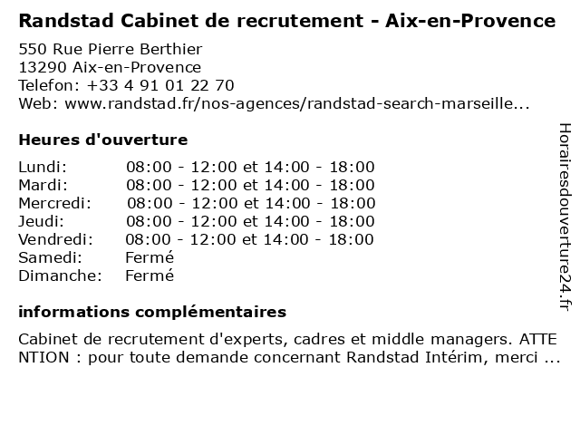 1 Agence d'intérim Randstad - Aix-en-Provence (Distance: 0,00 km) 550 Rue Pierre Berthier, 13290 Aix-en-Provence agence, agence intérim, agence pour l'emploi, aix, conseils en recrutement, d'intérim, en, guide des salaires, offres d'emploi, provence, randstad, recrutement intérim 2 Randstad Intérim (Distance: 0,13 km) 550 rue Pierre Berthier, 13290 Aix-en-Provence cdd, emploi, fixe, interim, intérim, partiel, randstad, temporaire 3 Fed Santé - Intérim & Recrutement (Distance: 0,19 km) 1330 avenue Jean René Guillibert, 13290 Aix-en-Provence agence, emplois, fed, intérim, offres, recrutement, santé 4 Axxis Intérim & Recrutement (Distance: 1,48 km) 485 rue Marcellin Berthelot, 13290 Aix en Provence agence, axxis, interim, intérim, recrutement 5 Axxis Intérim & Recrutement (Distance: 1,48 km) 485 rue Marcellin Berthelot, 13290 Aix en Provence agence, axxis, interim, intérim, recrutement 6 CCLD - Cabinet de Recrutement (Distance: 1,67 km) 240 Rue de Broglie, 13290 Aix-en-Provence agence, cabinet, ccld, de, emplois, intérim, offres, recrutement |