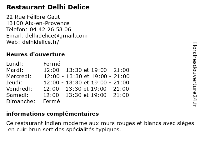 | Jeudi | 12:00-13:30 et 19:00-21:00 |