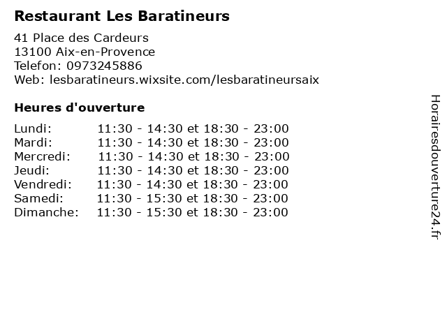 Jeudi | 11:30-14:30 et 18:30-23:00 |