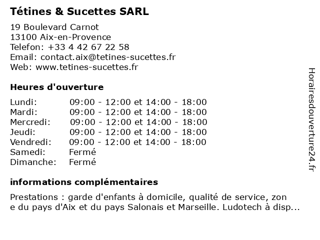| Mercredi | 09:00-12:00 et 14:00-18:00 |