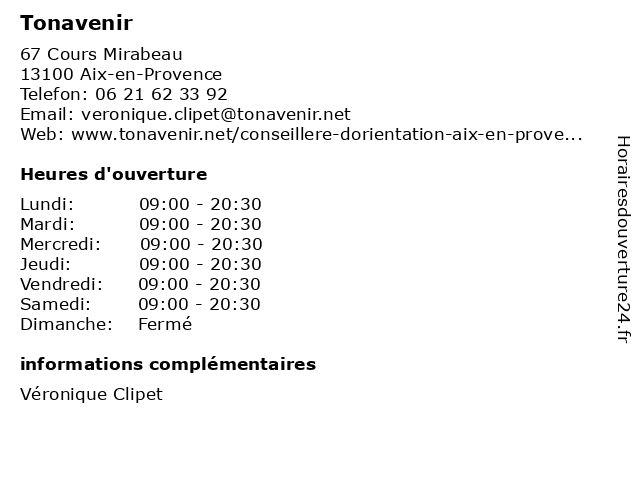| Lundi | 09:00-20:30 |