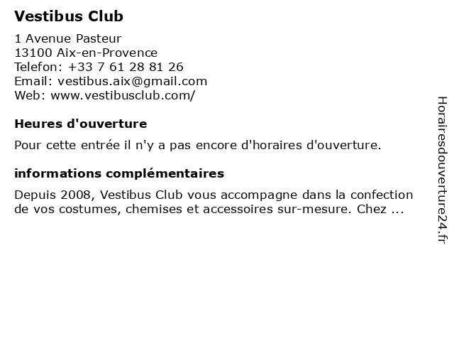 1 Automobile Club d’Aix-en-Provence (Distance: 0,12 km) 7 Boulevard Jean Jaurès, 13100 Aix-En-Provence automobile, club, d’aix, en, examen, permis, provence 2 Empanadas Club (Distance: 0,44 km) 31 Rue Félibre Gaut, 13100 Aix-en-Provence alimentation, club, empanadas, restaurant, resto, sortie 3 Le Club Littéraire du Lundi (Distance: 0,45 km) 38 Rue De La Verrerie, 13100 Aix-en-Provence bar, boissons, club, du, le, lecture, littéraire, lundi 4 Aix Sauna Club (Distance: 0,54 km) 8 Rue Annonerie Vieille, 13100 Aix-en-Provence aix, business, club, relaxation, sauna, spa 5 Le Diva Resto Club (Distance: 0,68 km) 10 Avenue Maréchal de Lattre de Tassigny, 13090 Aix-en-Provence bars, business, club, clubs, diva, le, nightlife, resto 6  |