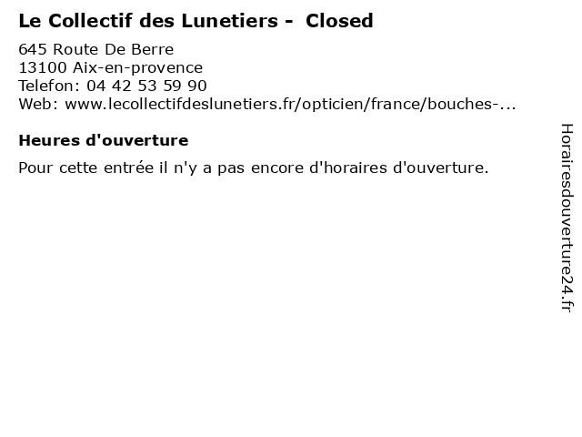 | Appeler Le Collectif des Lunetiers - Closed | |