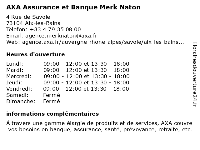1 AXA Assurance et Banque Merk Naton (Distance: 3,42 km) 85 Chemin du Moulin, 73100 Grésy-sur-Aix assurance, assurance appartement, assurance auto, assurance entreprise, assurance epargne, assurance habitation, assurance maison, assurance professionnelle, assurance santé, assurance voiture, axa, banque, et, merk, naton 2 Macif Assurance (Distance: 0,10 km) 33 Avenue Du Petit Port, 73100 Aix-Les-Bains assurance, assurances, macif, mutuelle, services 3 Caisse Primaire d'Assurance Maladie (CPAM) (Distance: 0,69 km) 657 Boulevard Wilson, 73100 Aix-les-Bains administration, assoc, caisse, cpam, d'assurance, maladie, primaire, services, services publics 4 AXA Prévoyance & Patrimoine Matthieu Guidon (Distance: 1,86 km) 101 Chemin des Massonnat, 73100 Aix-les-Bains assurance décès, assurance entreprise, assurance epargne, assurance invalidité, assurance patrimoine, assurance profession libérale, assurance protection juridique, assurance prévoyance, assurance santé, assurance vie, axa, guidon, matthieu, patrimoine, prévoyance 5 AXA Prévoyance & Patrimoine Lucy Goupil (Distance: 1,93 km) 110 Avenue de Marlioz, 73100 Aix-les-Bains assurance décès, assurance entreprise, assurance epargne, assurance invalidité, assurance patrimoine, assurance profession libérale, assurance protection juridique, assurance prévoyance, assurance santé, assurance vie, axa, goupil, lucy, patrimoine, prévoyance 6 Axa Assurance (Distance: 4,07 km) 2 Chemin du Biollay, 73100 Brison Saint-Innocent agence, assurance, assurance prêt, assurances, axa, services |