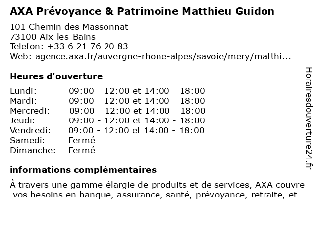 | Lundi | 09:00-12:00 et 14:00-18:00 |