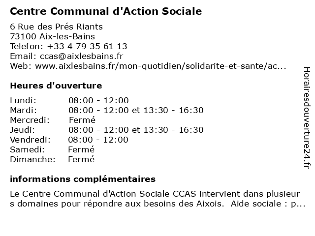 | Mardi | 08:00-12:00 et 13:30-16:30 |