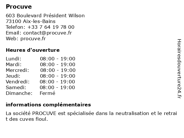 | Lundi | 08:00-19:00 |