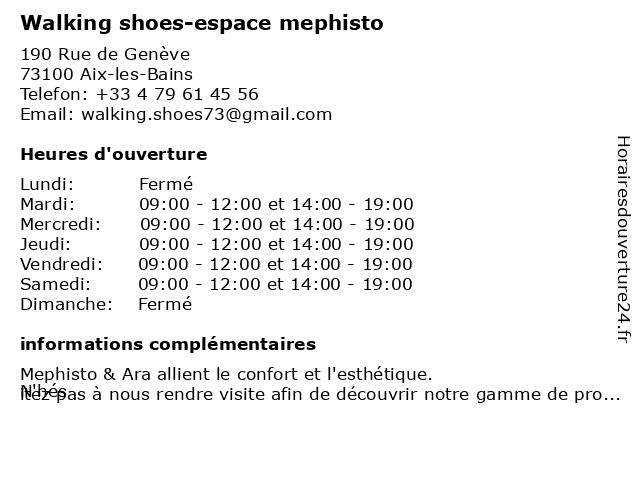 1 Walking shoes-espace mephisto (Distance: 0,00 km) 190 Rue de Genève, 73100 Aix-les-Bains espace, mephisto, shoes, walking 3 Espace Foot (Distance: 10,68 km) 1414 Avenue des Landiers, 73000 Chambery chaussures, espace, femme, foot, homme, mode, sport 4 Factory Store - Shoes (Distance: 13,53 km) 140 Rue Jean Perrier gustin, 73000 Bassens accessoires, boutique, chaussures, factory, mode, shoes, store, vêtements 5 Espace Montagne (Distance: 13,55 km) 450, avenue de Chambéry, 73000 Chambery chaussures, entretien, espace, instruments, librairie, materiel, montagne, optiques, sante, soins, vetements 6 Sweet Shoes - Cordonnerie Michelier (Distance: 13,82 km) 4 Rue Favre, 73000 Chambéry charentaise, chaussons, chaussures, clés, cordonnerie, michelier, reproduction, réparation, shoes, sweet |