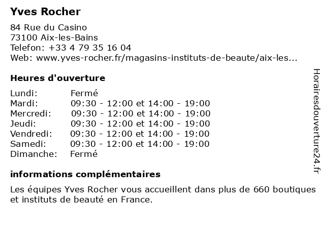 | Samedi | 09:30-12:00 et 14:00-19:00 |