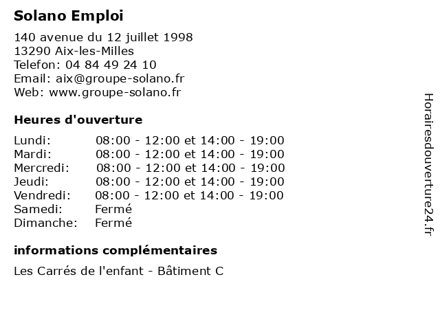 | Lundi | 08:00-12:00 et 14:00-19:00 |