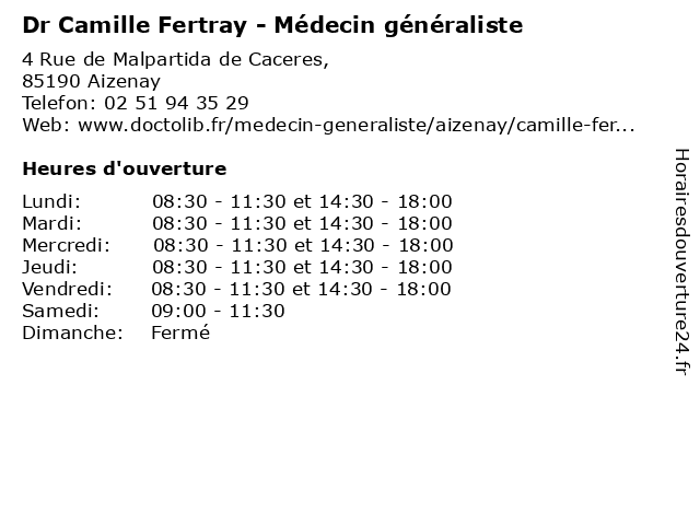 | Mercredi | 08:30-11:30 et 14:30-18:00 |