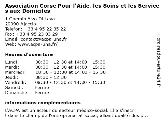 Termes de recherche pour Association Corse Pour l'Aide, les Soins et les Services aux Domiciles:et, les, aux, services, pour, soins, corse, association, l'aide, domiciles |