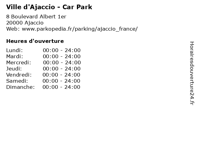 1 Ville d'Ajaccio - Car Park (Distance: 0,23 km) 18 Boulevard Albert 1er, 20000 Ajaccio automobile, car, d'ajaccio, park, parking, services, ville 2 Ville d'Ajaccio - Car Park (Distance: 1,29 km) . Quai de la République, 20000 Ajaccio automobile, car, d'ajaccio, park, parking, services, ville 3 Ville d'Ajaccio - Car Park (Distance: 1,87 km) . Boulevard Charles Bonaparte, 20000 Ajaccio automobile, car, d'ajaccio, park, parking, services, ville 4 Ville d'Ajaccio - Car Park (Distance: 2,58 km) . Boulevard Charles Bonaparte, 20090 Ajaccio automobile, car, d'ajaccio, park, parking, services, ville 5 Le Groupe Système U - Car Park (Distance: 2,45 km) . Jean Nicoli, 20090 Ajaccio automobile, car, groupe, le, park, parking, services, système 6 Le Groupe Carrefour - Car Park (Distance: 2,82 km) . Prince Impérial, 20090 Ajaccio automobile, car, carrefour, groupe, le, park, parking, services |