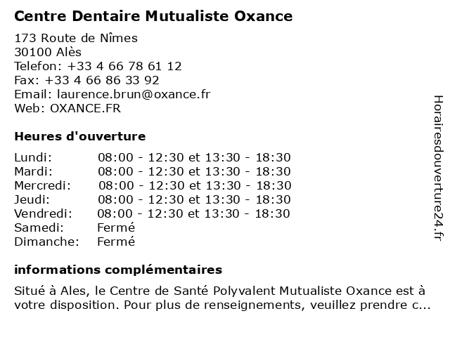 | Mercredi | 08:00-12:30 et 13:30-18:30 |