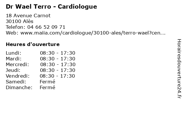 | Mercredi | 08:30-17:30 |