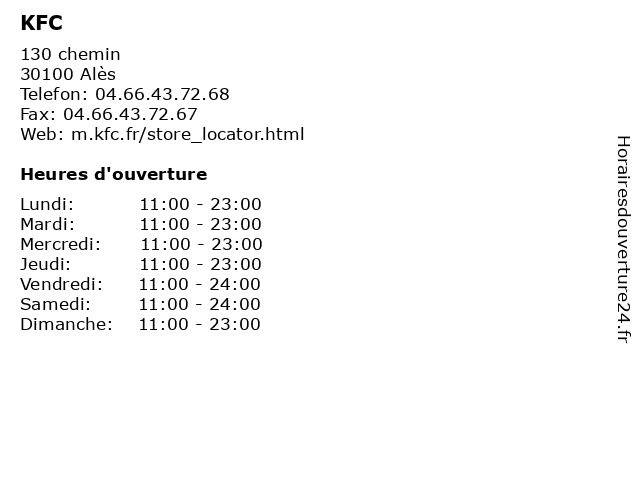 1 KFC Alès (Distance: 1,79 km) 314 Chemin Sous Saint Etienne, 30100 Alès alès, burgers et buckets, fastfood, frites, kfc, poulet et bucket, restaurant 3 KFC Nimes (Distance: 38,05 km) 241 Rue de l'Archipel, 30900 Nîmes burgers et buckets, fastfood, frites, kfc, nimes, poulet et bucket, restaurant 4 Netto (Distance: 42,09 km) 33 Boulevard des Chataigniers, 30120 Le-Vigan achats de produits alimentaires, des prix bas, grands supermarchés, hard discount, netto, supermarchés 5 Vival by Casino (Distance: 44,48 km) 229 Rue de la République, 30290 Laudun-l'Ardoise by, casino, droguerie, d’hypermarchés, frais, fruits et légumes, hygiène, parfumerie et autres produits non alimentaires., surgelés, vival, épicerie 6 |