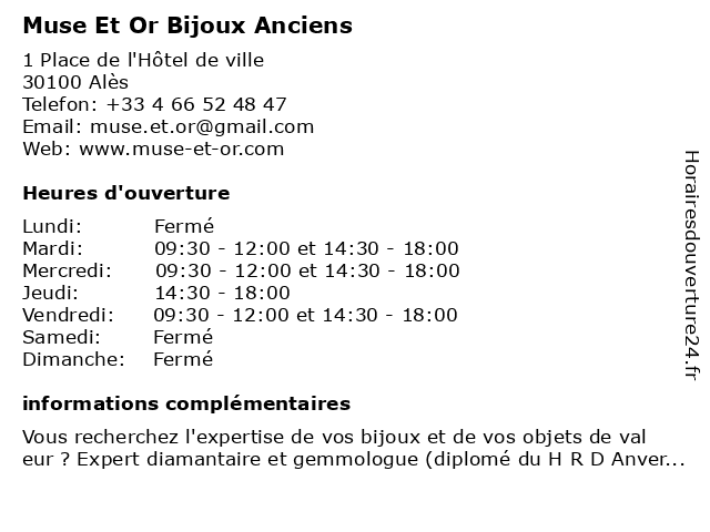 | Vendredi | 09:30-12:00 et 14:30-18:00 |