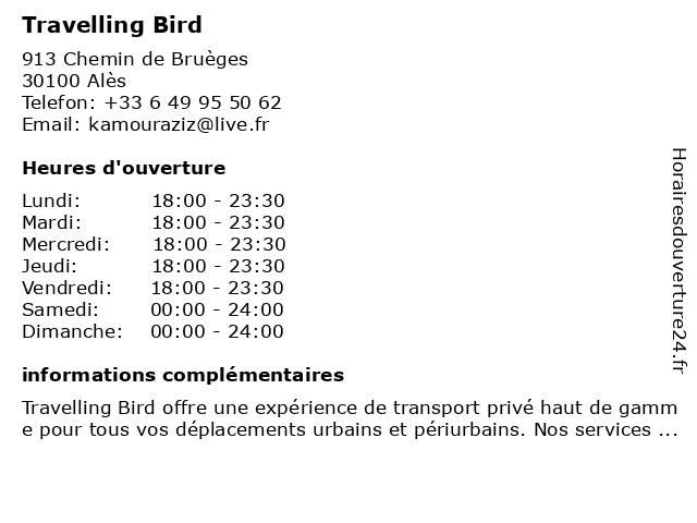 | Mercredi | 18:00-23:30 |