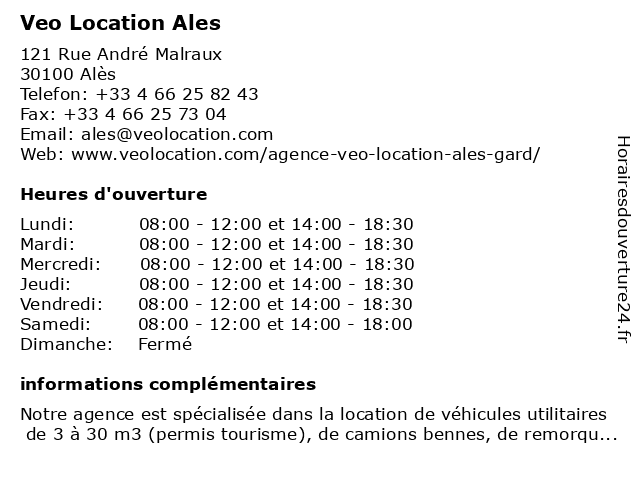1 CarGo Location de Véhicules ALES (Distance: 0,00 km) 121 Rue André Malraux, 30100 Alès ales, cargo, de, location, véhicules 2 E.Leclerc Location (Distance: 1,31 km) 1451 Chemin de Trespeaux, 30100 Ales agence de location de camions, de, e.leclerc, lieu de covoiturage, location, véhicules 3 ADA Location Alès (Distance: 1,93 km) 15 Avenue Jules Guesde, 30100 Alès ada, alès, location, utilitaires 4 Hyper U Location (Distance: 2,31 km) - Avenue Olivier de Serres, 30100 Alès hyper, location, transport, utilitaire, véhicule 5 Nova Location (Distance: 2,51 km) 1660 Route de Nîmes, 30560 Saint-Hilaire-de-Brethmas agence, cartons, déménagements, location, nova, utilitaires, véhicules 6 Intermarché location Ales (Distance: 3,02 km) 198 avenue des Frères Lumière, 30100 Ales ales, christol, intermarché, les, location, saint |