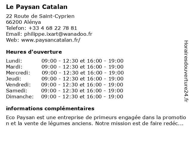 Dimanche | 09:00-12:30 et 16:00-19:00 |