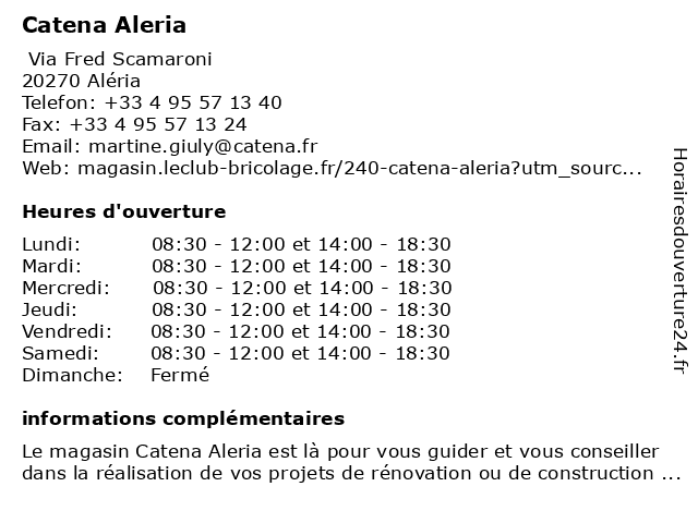 Samedi | 08:30-12:00 et 14:00-18:30 |