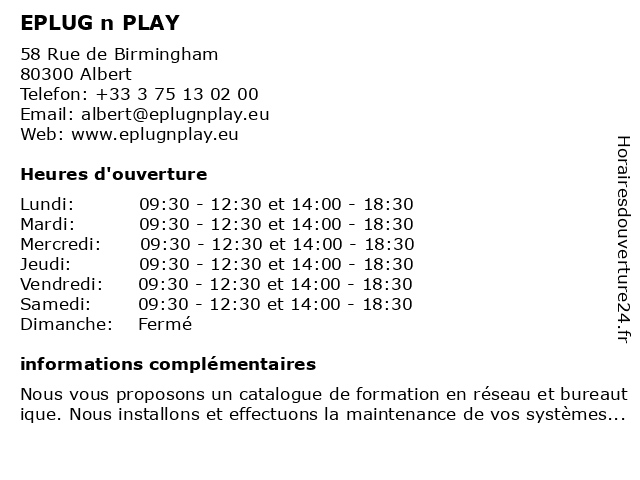 | Samedi | 09:30-12:30 et 14:00-18:30 |