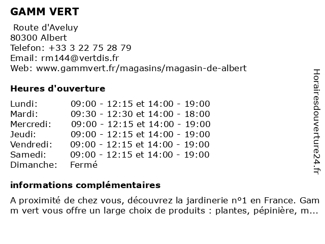 1 Gamm vert (Distance: 16,75 km) 11-13 RUE JULES LARDIERE, 80800 FOUILLOY animalerie, animaux, gamm, horticulteur, jardin, jardinerie, vert 2 GAMM VERT (Distance: 17,21 km) Rue des Frères Davion, 62450 Bapaume animalerie, gamm, jardin, jardinerie, mobilier de jardin, plantes, pépinière, vert 3 Gamm Vert (Distance: 19,64 km) - Rue de Demuin, 80800 Villers-Bretonneux animalerie, animaux domestiques, gamm, jardin, jardinerie, jeux, meubles, services, vert 4 GAMM VERT (Distance: 19,94 km) Chaussée du Val de Somme, 80800 Villers-Bretonneux animalerie, gamm, jardin, jardinerie, mobilier de jardin, plantes, pépinière, vert 5 Albert Espace Vert Etablissement Glaçon (Distance: 1,79 km) 53 Rue Jules Ferry, 80300 Albert albert, espace, etablissement, glaçon, vert 6 VERT-tical (Distance: 14,90 km) 7 rue de cappy, 62450 Ligny-Thilloy entreprise, murs, spécialiste, tical, vert, végétaux |