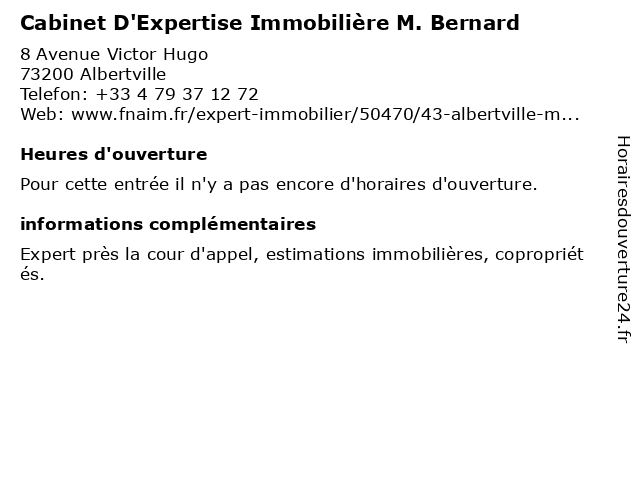 | Appeler Cabinet D'Expertise Immobilière M. Bernard | |
