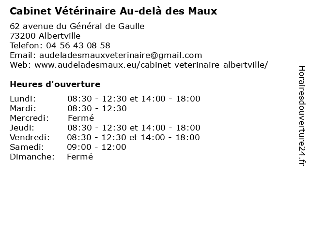 | Lundi | 08:30-12:30 et 14:00-18:00 |