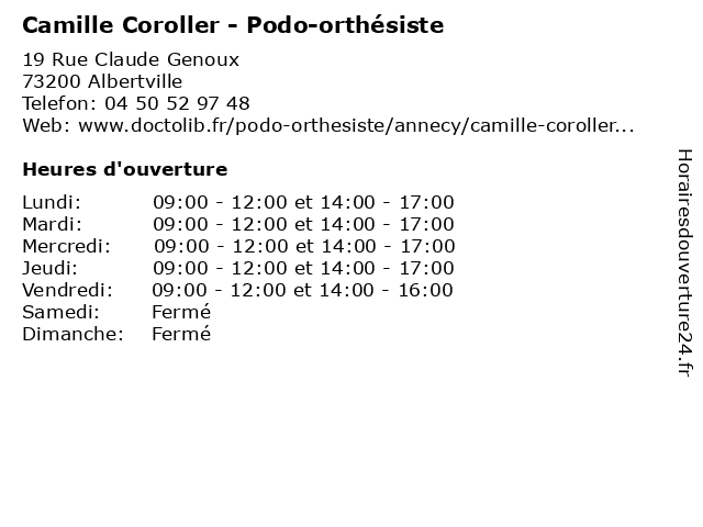 | Lundi | 09:00-12:00 et 14:00-17:00 |