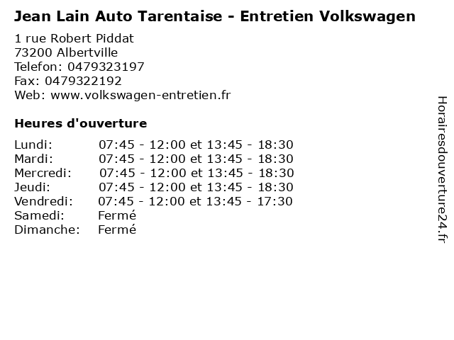 | Lundi | 07:45-12:00 et 13:45-18:30 |