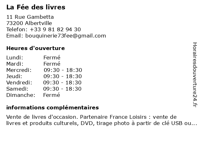 1 Fée du Burger (Distance: 0,20 km) 16 rue Joseph Mugnier, 73200 Albertville burger, du, fast, fee, food, fée, restaurant, restauration 2 La Fée Maraboutée (Distance: 32,65 km) 64 rue Carnot, 74000 Annecy boutiques, fée, la, maraboutée, mode, services, vêtements 3 Les Doigts de Fée (Distance: 33,38 km) 34 Avenue de Brogny, 74000 Annecy beauté, coiffeur, coiffure, de, doigts, fée, les, manucure, maquilleur, salon 4 Elle Fée du Ski (Distance: 34,07 km) - La Traverse, 73350 Champagny-en-Vanoise accessoires, du, elle, fée, habillement, mode, pret à porter, ski, vêtements 5 La Fée Caprice (Distance: 36,46 km) s/n Rue de Bolliet,, 73000 Bassens boutiques, caprice, fée, la, lingerie, mode 6 La Fée Maraboutée (Distance: 37,26 km) 81 rue du Casino, 73100 Aix-Les-Bains boutique, fée, la, la fée, magasin, maraboutée, mode |
