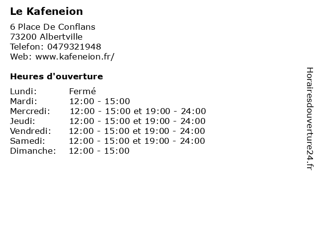 Samedi | 12:00-15:00 et 19:00-24:00 |