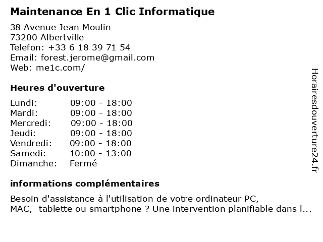 | Lundi | 09:00-18:00 |