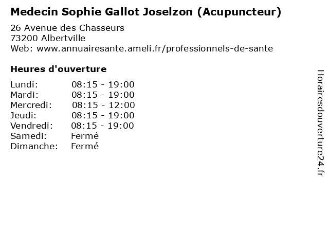 | Jeudi | 08:15-19:00 |