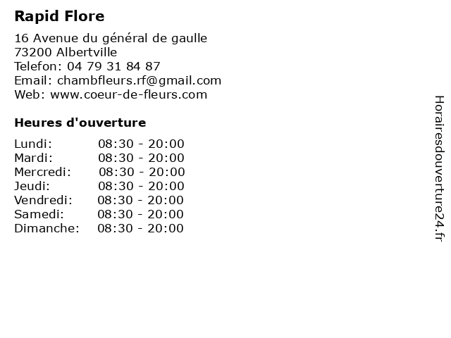 | Samedi | 08:30-20:00 |