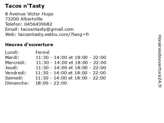 | Mardi | 11:30-14:00 et 18:00-22:00 |