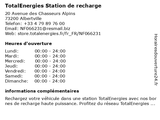 1 TotalEnergies Access - RELAIS ALBERTVILLE LES CHASSEURS (Distance: 0,00 km) 20 AVENUE DES CHASSEURS ALPINS, 73200 ALBERTVILLE access, albertville, chasseurs, gas station, les, relais, station service, tankstelle, total, totalenergies 2 TotalEnergies - STATION SERVICE ALBERTVILLE (Distance: 1,41 km) 29 RUE RAYMOND BERTRAND, 73200 ALBERTVILLE albertville, gas station, service, station, station service, tankstelle, total, totalenergies 3 TotalEnergies Station de recharge (Distance: 33,62 km) Aire de la Ripaille, 74600 Seynod borne de recharge, borne de recharge autoroute, borne de recharge rapide, ccs, chademo, charge haute puissance, charge+, charging station, de, ev, high power charge, ma charge rapide, mobility, recharge, recharger ma voiture, recharger voiture, station, station autouroute, station de recharge, station-service, supercharger, tankstelle, total, totalaccess, totalenergie, totalenergies 4 TotalEnergies Station de recharge (Distance: 36,19 km) A41 Aire De Drumettaz, 73420 Drumettaz-Clarafond borne de recharge, borne de recharge autoroute, borne de recharge rapide, ccs, chademo, charge haute puissance, charge+, charging station, de, ev, high power charge, ma charge rapide, mobility, recharge, recharger ma voiture, recharger voiture, station, station autouroute, station de recharge, station-service, supercharger, tankstelle, total, totalaccess, totalenergie, totalenergies 5 Fastned Charging Station (Distance: 40,25 km) Aire des Crêts Blancs A410, 74570 Groisy charger, charging, charging station, electric car, ev charging, fast charging, fastned, station 6 Fastned Charging Station (Distance: 40,35 km) Aire de Groisy A410, 74570 Groisy charger, charging, charging station, electric car, ev charging, fast charging, fastned, station |