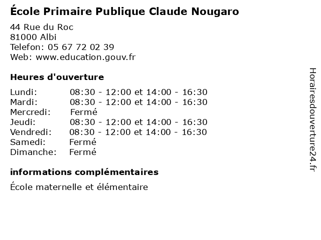 | Mardi | 08:30-12:00 et 14:00-16:30 |