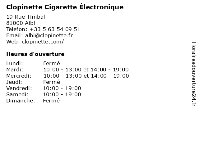 | Mercredi | 10:00-13:00 et 14:00-19:00 |