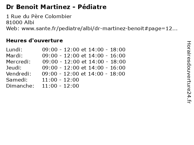 | Mercredi | 09:00-12:00 et 14:00-18:00 |