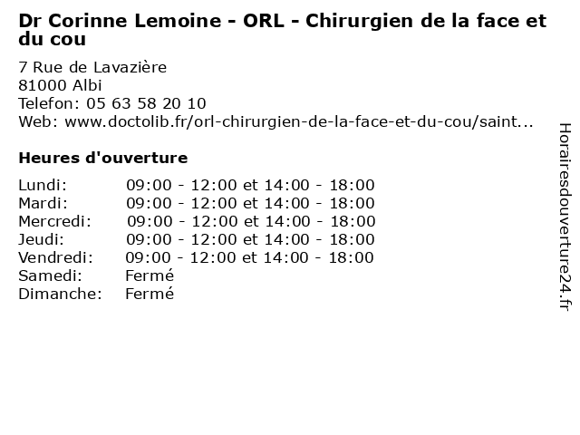 | Lundi | 09:00-12:00 et 14:00-18:00 |
