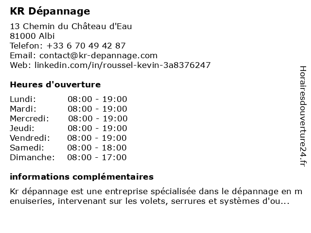 4 SOS Pare-Brise+ (Distance: 2,59 km) 246 Avenue Colonel Teyssier, 81000 Albi automobile, brise+, dépannage, magasin, pare, pare brise, réparation, sos 5 Petit Forestier Albi - Location de véhicules frigorifiques (Distance: 2,68 km) 77 Route de Millau, 81000 Albi 24h24, albi, de, dépannage, entretien, expert, forestier, frigorifiques, full service, location, location de containers frigorifiques, location de meubles frigorifiques, location de véhicules frigorifiques, petit, véhicules 6 Equasys (Distance: 2,79 km) 8 Rue Gustave Eiffel, 81000 Albi dépannage, equasys, informatique, magasins |