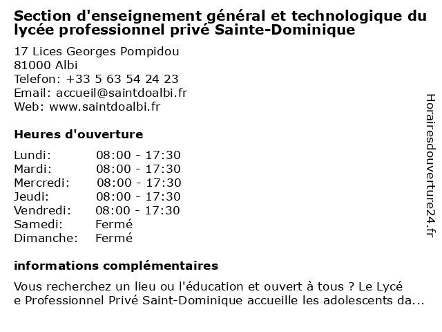 Termes de recherche pour Section d'enseignement général et technologique du lycée professionnel privé Sainte-Dominique:sainte, du, et, general, privé, lycee, dominique, professionnel, section, d'enseignement, technologique |