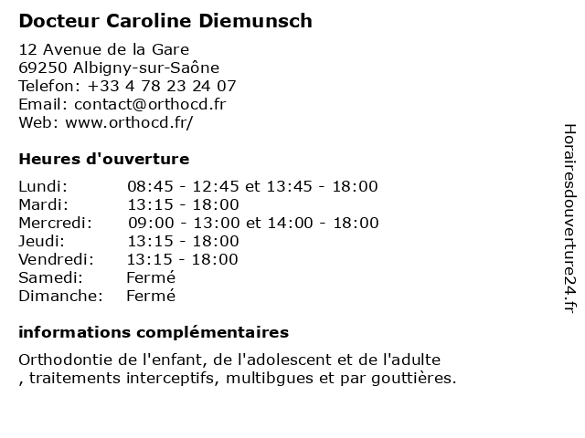 | Lundi | 08:45-12:45 et 13:45-18:00 |