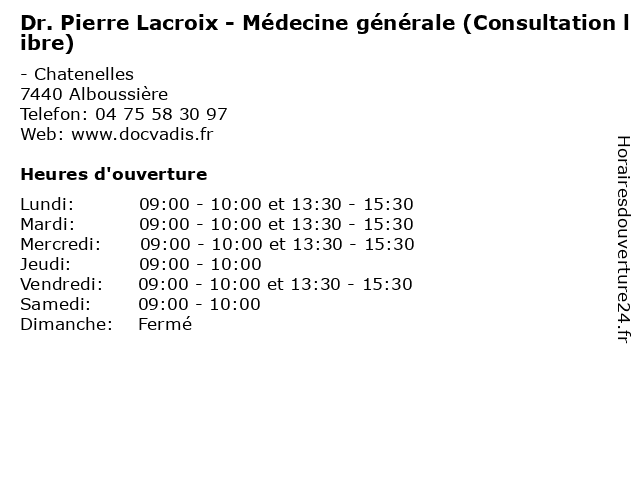 Termes de recherche pour Dr. Pierre Lacroix - Médecine générale (Consultation libre):pierre, générale, medecine, santé, libre, lacroix, docteur, dr., consultation |