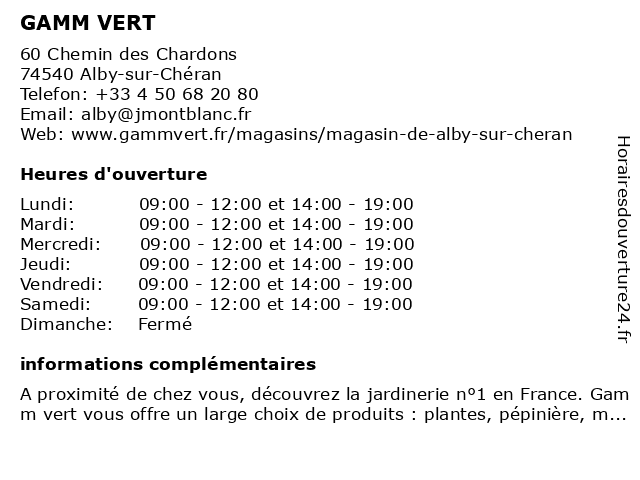 | Samedi | 09:00-12:00 et 14:00-19:00 |
