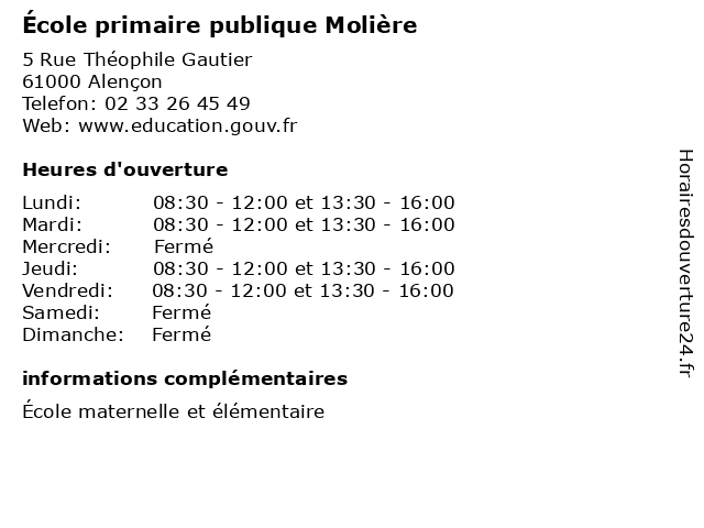 | Lundi | 08:30-12:00 et 13:30-16:00 |