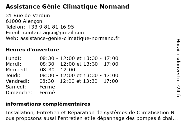 | Lundi | 08:30-12:00 et 13:30-17:00 |