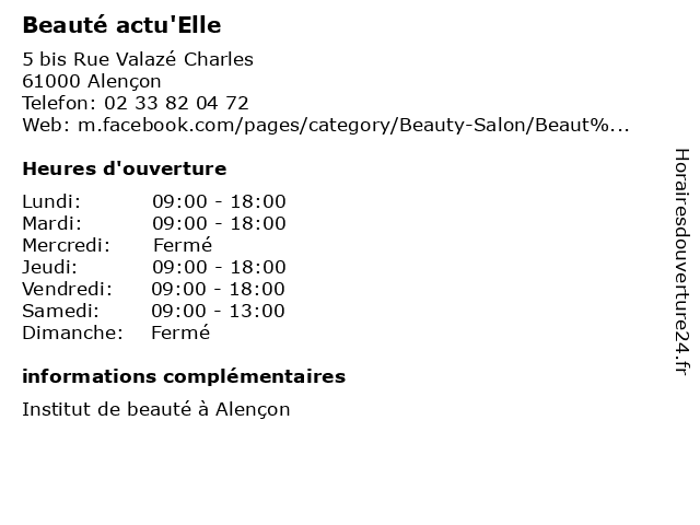 1 Beauté actu'Elle (Distance: 0,00 km) 5 bis Rue Valazé Charles, 61000 Alençon actu'elle, beaute, beauté, institut, ongles, produits 2 3 Coiffeur Elle et Lui (Distance: 28,62 km) 36 Rue Jules Doitteau, 53700 Villaines-la-Juhel coiffeur, elle, et, lui 4 Institut Au Natur'Elle (Distance: 48,20 km) 11 place de l’Éperon, 72000 Le Mans au, institut, institut de beauté, natur'elle, onglerie, soins épilations 5 Institut Au Natur'Elle (Distance: 48,50 km) 4 Bis Rue Alger, 72000 Le Mans au, institut, institut de beauté, natur'elle, onglerie, soins épilations 6 Coiffure Elle et Lui (Distance: 49,08 km) 109 Avenue Olivier Heuzé, 72000 Le Mans beauté, coiffure, coiffures, coloristes, elle, et, lui |